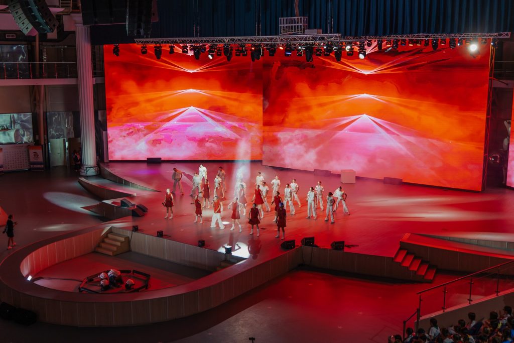 Итоговую постановку готовили в рамках образовательных модулей в течение всей смены. В программе приняли участие 100 детей из России и зарубежных стран – это юные вокалисты, музыканты, литераторы, артисты, художники, медийщики и интеллектуалы в возрасте 11-16 лет. Все они – победители и призёры различных событий, реализованных проектом «Школа Росатома»: «Международных умных каникул 2024», Фестиваля авторской музыки и поэзии «U-235. Новые песни», проекта детских СМИ «Атом МЕДИА», проекта «Вместе по нашей России», мероприятий инженерной и естественнонаучной направленности Сети атомклассов, конкурса эссе.